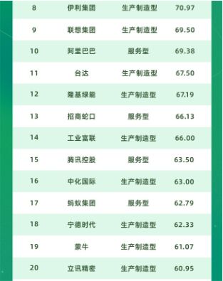 2023中國企業雙碳行動力榜單top30: